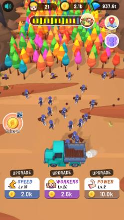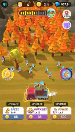 玩家可以充分利用金币雇佣伐木工,体验解压小游戏的魅力;游戏画风简约和谐,背景音乐舒缓安心,可以放松心情。游戏操作十分简单,在屏幕上点点滑动即可完成对树的砍伐。
