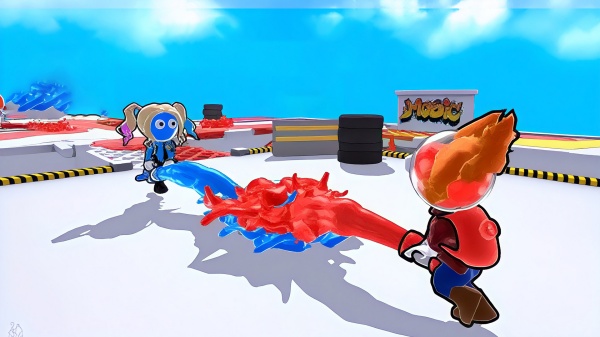 1、玩家要控制颜料的喷射方向,成功命中对手就能造成伤害,还能给周围的事物染上不同的颜色。