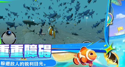 在游戏中玩家滑动屏幕左侧控制小鱼移动方向,需在倒计时结束前完成当前关卡目标。若超时或被大鱼捕获则挑战失败。游戏包含从浅海到深海的多样化场景,每关布置不同机关与敌人,通关奖励包含提示卡、耐心恢复剂等道具。对休闲闯关游戏感兴趣的玩家不容错过,下载体验一下吧~
