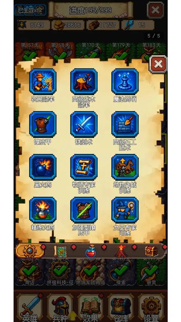3、管理资源时侧重平衡金币与木材消耗,多数建筑和科技需两者配合,避免单一资源过剩影响发展进度,可通过商店灵活调节。