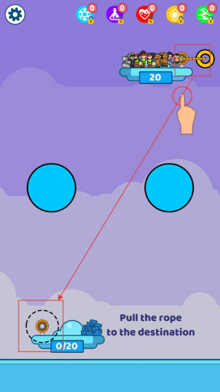 2、绳索搭建完成后,点击角色使其沿绳索滑行或摆动,途中需避开障碍,安全抵达指定出口即为成功。