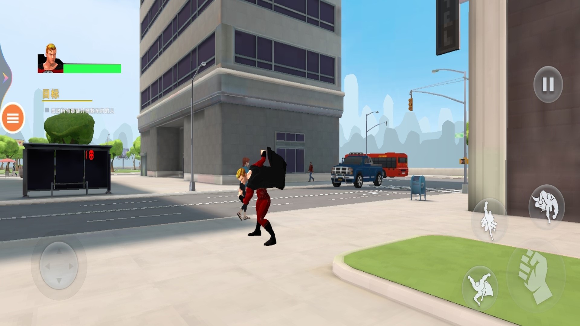 3.现在玩家需要控制超人飞行到目的地,使用左侧的虚拟摇杆控制角色行动,右侧用来控制飞行和战斗。