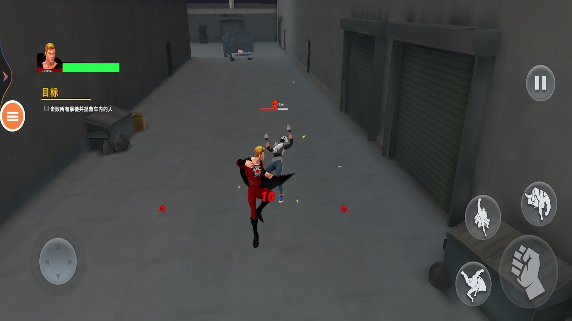 2.战术对抗系统:与多样化犯罪分子近身交锋,通过连招组合实现精准打击,击败目标。