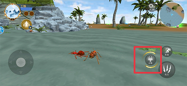 1、进入游戏后通过左边的摇杆控制蜘蛛移动到猎物前后,使用攻击按钮将猎物猎杀