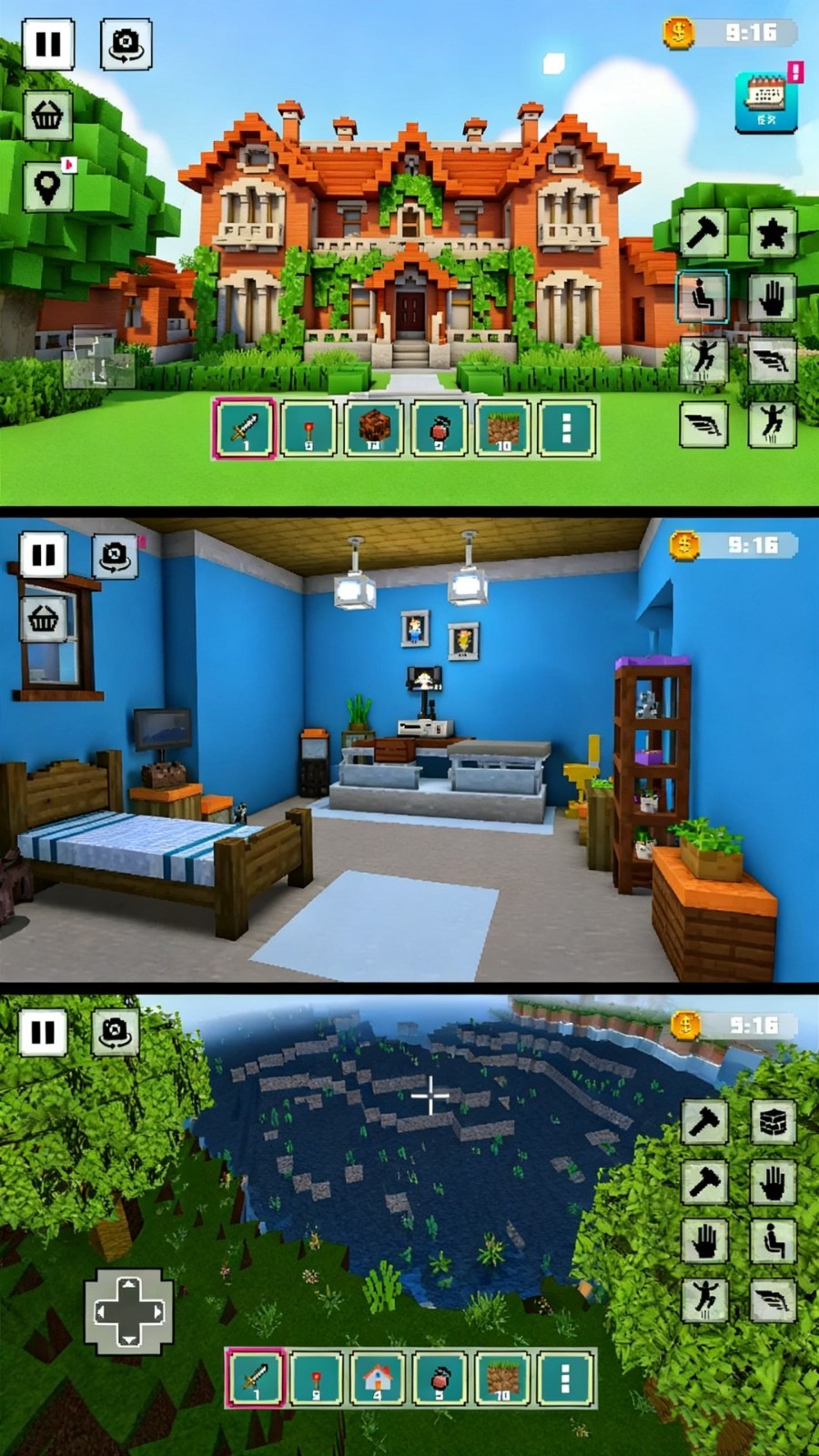 1.开放世界沙盒体验:游戏构建于像素方块风格的世界,提供高度自由的探索与创造空间,无固定流程限制,玩家自主决定行动方向。
