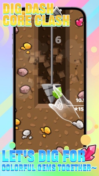 1、通过左右滑动屏幕控制钻头方向,持续向下挖掘可收集黄金、钻石等资源。