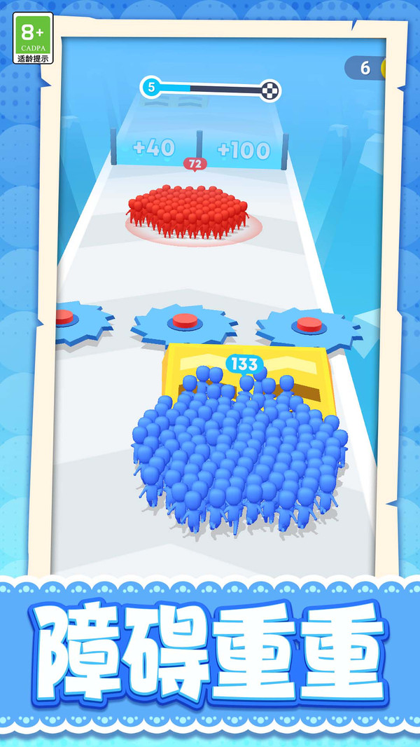 2、关卡开始前,可升级初始人数与关卡收益,人数增多能提高容错率,收益提升则加快资源积累。