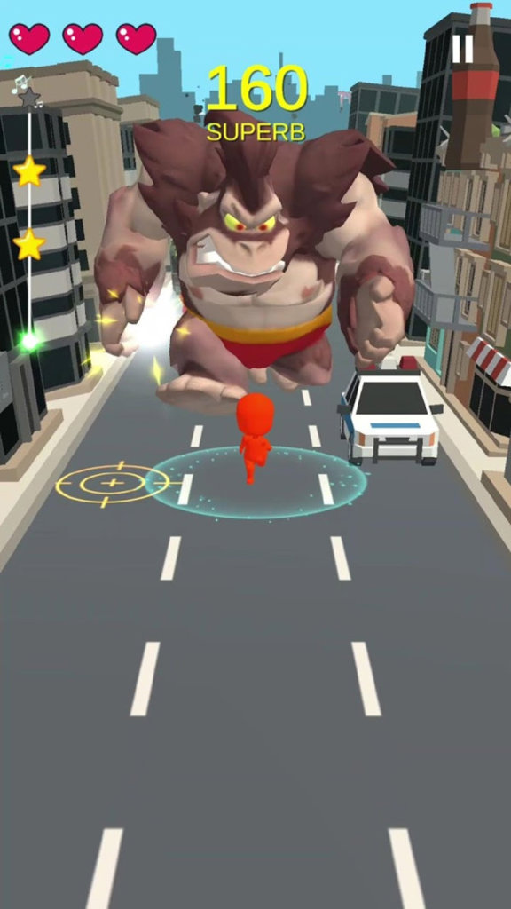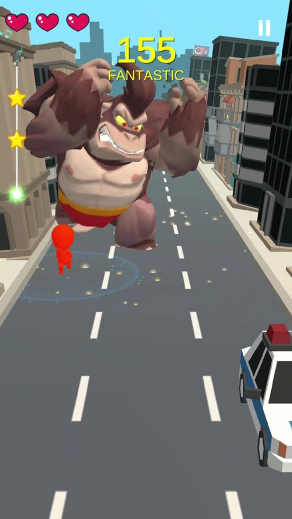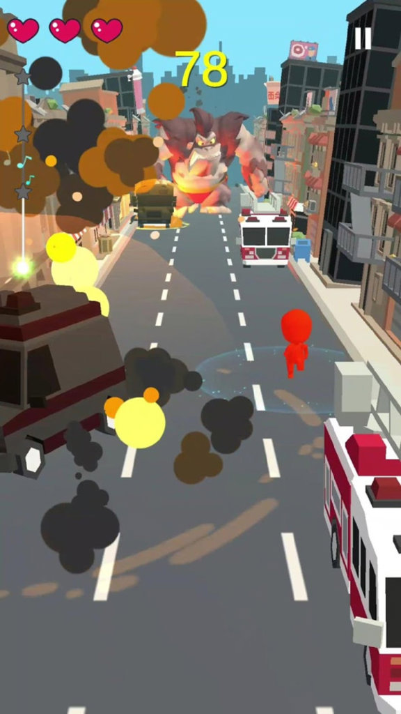 《节奏逃生》将益智解谜与动作冒险完美结合,创造出一个充满想象力的游戏世界。游戏中,巨型猩猩的突然降临彻底改变了城市的命运,它肆意破坏着眼前的一切。玩家需要控制角色在废墟中穿梭,不仅要躲避猩猩的直接攻击,还要小心被破坏的建筑碎片。游戏特别设计了"汽车跳跃"机制,玩家可以借助路边的汽车实现快速移动。随着游戏深入,玩家还能解锁更多特殊技能,比如二段跳、冲刺等,这些技能将帮助玩家应对越来越复杂的关卡挑战。游戏还设置了丰富的成就系统和排行榜,让玩家可以与全球玩家一较高下。