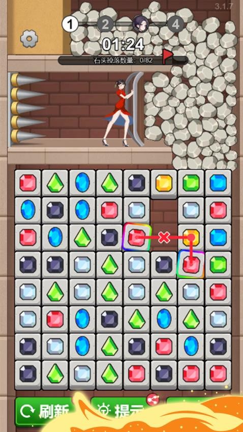 相同的砖块连连消除,拯救被困住的小女孩,快来解救她吧