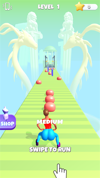 2、角色会自动往前进,操控角色左右移动收集更多大屁股;