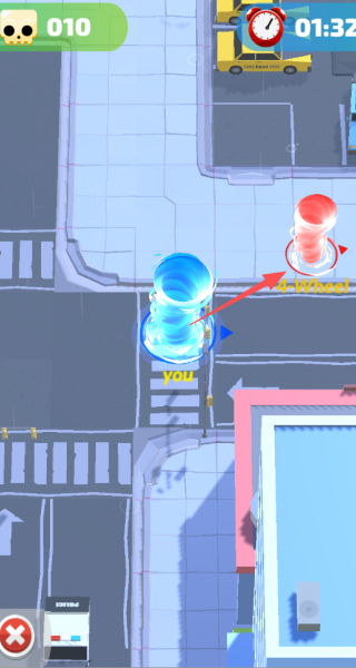 2、优先吞噬油罐等特殊物品,触发爆炸特效可大范围清理物体与敌方龙卷风,提升成长与对战效率。