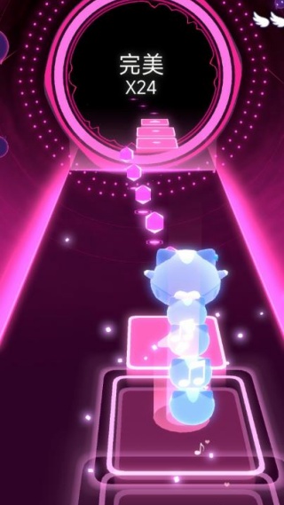 1、跟随歌曲旋律与节拍,在对应节点点击屏幕,操控猫咪完成跳跃。