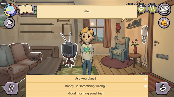7、在游戏左上角的是一天的时间,每次互动都会度过一定时间,到了夜晚就需要上床睡觉来度过一天。