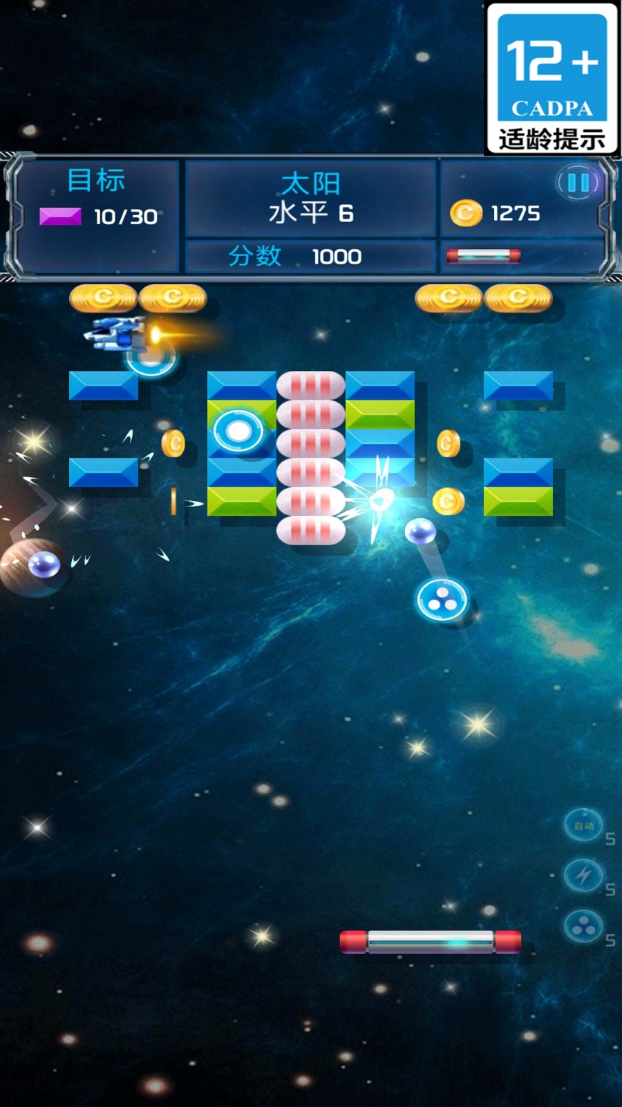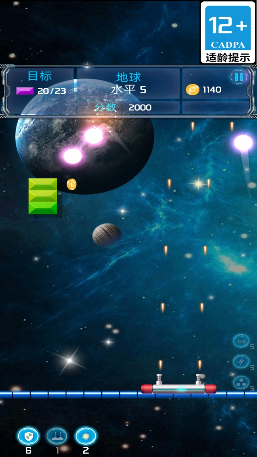 2、从第一关地球开始挑战,不断的闯关,参加弹球之中;