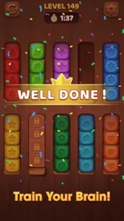 游戏卡通可爱,颜色鲜艳,能够给玩家带来舒适的游戏体验;游戏上手难度不高,适合新手玩家快速上手游玩,无聊的朋友们可以尝试体验一下呀,简单的方块美丽就在点触之间。