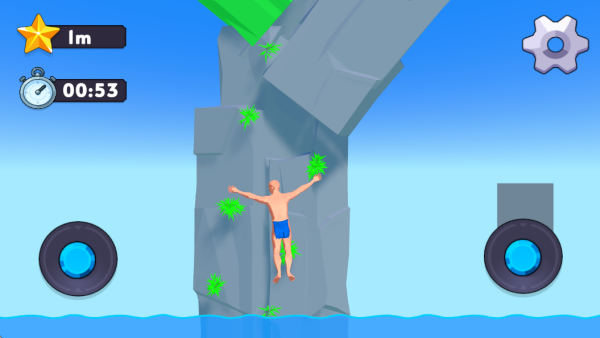1.通过屏幕左右两枚按钮分别控制角色双臂动作,实现抓握、移动与姿态微调,保持身体平衡与上行连贯性。
