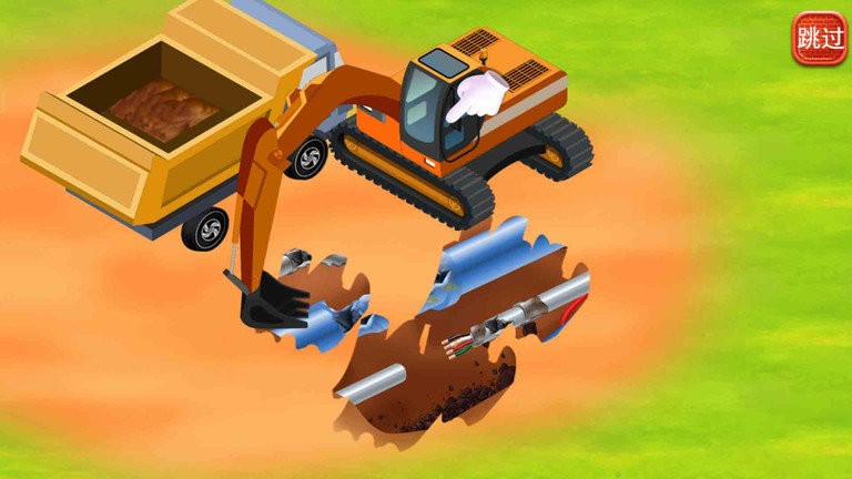 1、操作挖掘机将地面泥土装载到货车内,点击货车即可完成卸土流程。
