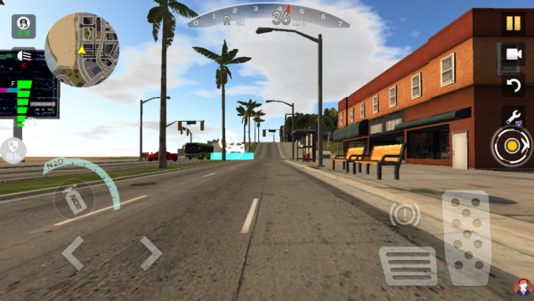 3.进入地图值周,使用左侧的按钮控制方向,右侧控制油门以及刹车。关注画面左上的小地图朝着目标前进吧。