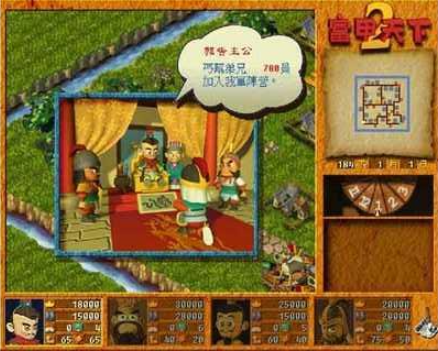1、以著名的三国时期为背景,用大富翁式的棋盘玩法来操控角色们逐鹿天下,争夺天下的归属权。