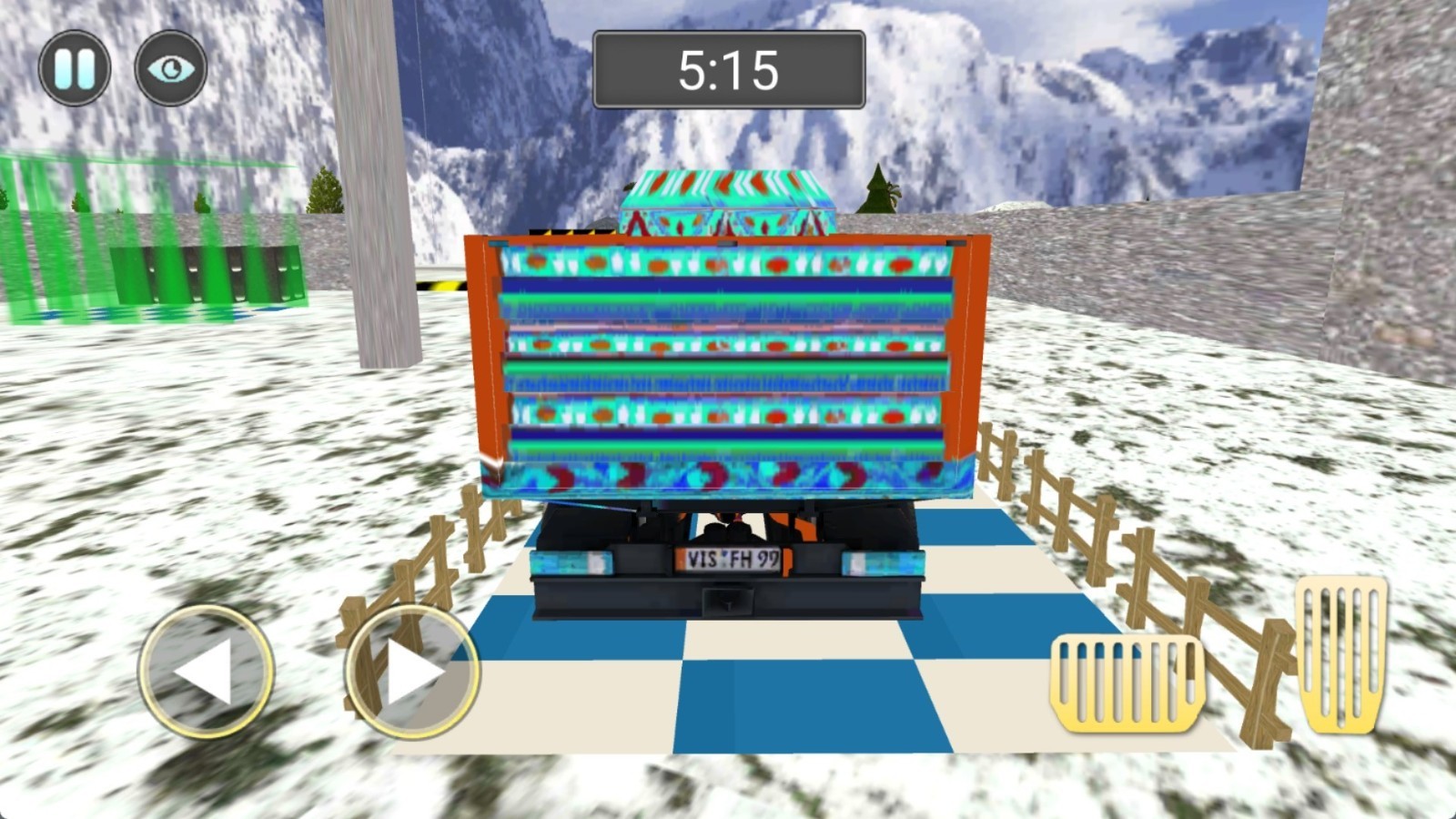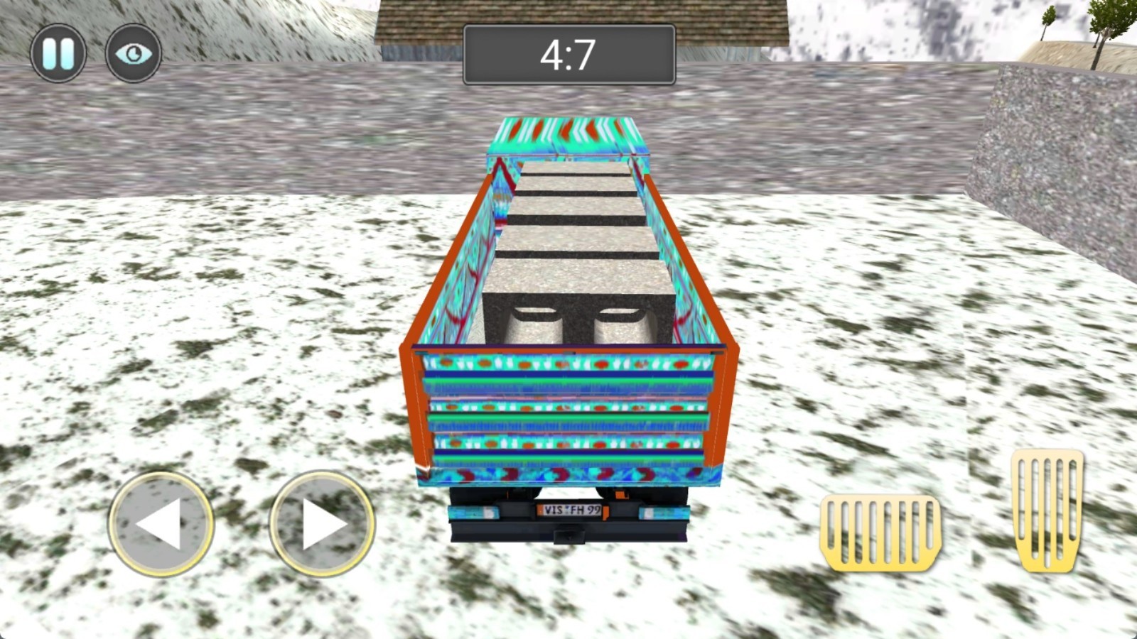 4.使用左侧按钮控制方向,右侧控制前进与后退。现在我们需要在五分钟的时间内将货物运输到指定的地点才能够成功闯关。