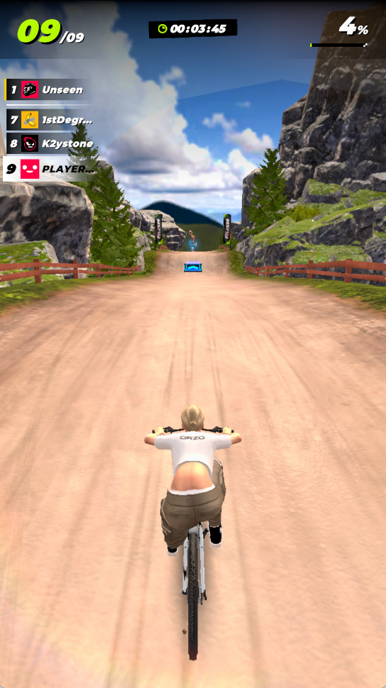 2、与其他骑手展开竞速比拼,利用地形特点如陡坡加速、跳跃点超车缩小差距,在冲刺阶段全力加速争夺冠军。
