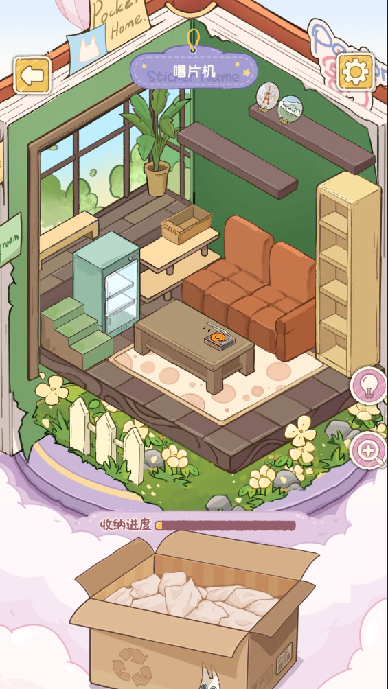 2、贴纸拼贴:通过简单的拖拽操作,玩家选用喜欢的贴纸进行布局搭建和家具装饰。可以按照自己的创意自由搭配,也能参考游戏提供的示例来布置房间。