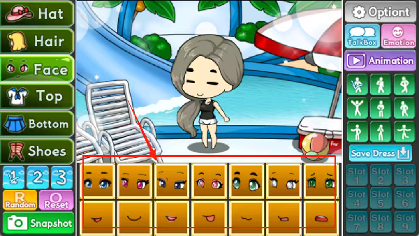 2、根据文字提示在左右两侧分别选择喜欢的服装款式和角色表情动作。