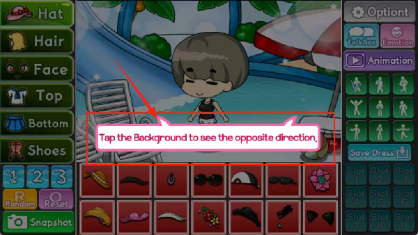 1、游戏采用精美的卡通画面风格,点击开始按钮即可进入装扮环节。