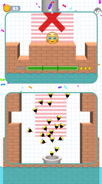2.红砖可以被蜜蜂击中摧毁,玩家可以引导蜜蜂击中使用碎片的砖块,保护蜂群,建立安全区;