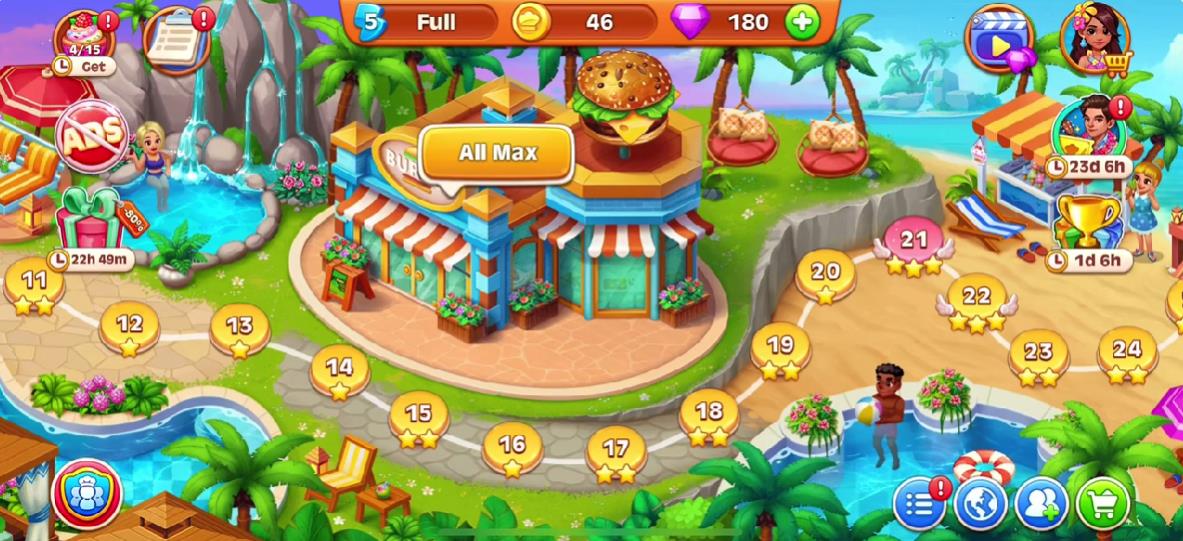 3、厨房和餐厅装修系统,玩家可以自由设计布局、装饰和厨房设备,打造独一无二的餐厅风格。