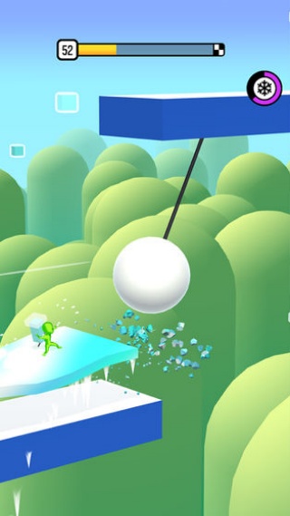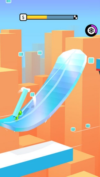 3、轻松上手的操作与适中的难度曲线,角色会自动向前奔跑,玩家只需专注绘制冰面,降低了操作门槛,同时关卡设计由浅入深。