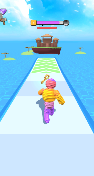 2、跑酷途中躲避各类陷阱与难关,同时主动收集散落的五彩毛线,为提升撞击力积累能量。