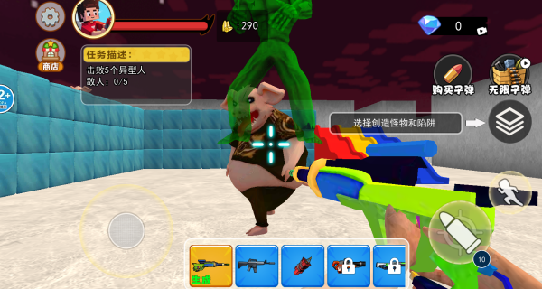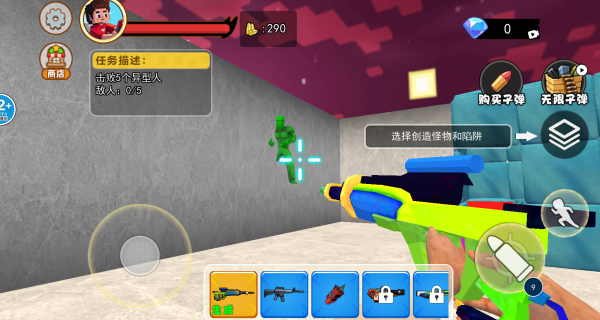1、子弹有限时优先瞄准怪物弱点射击,避免盲目浪费弹药,若资源匮乏可前往商店购买子弹或解锁无限子弹。
