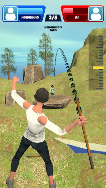 2、在战斗中调节角度、蓄力和投掷方向,准确命中对手以造成最大伤害。