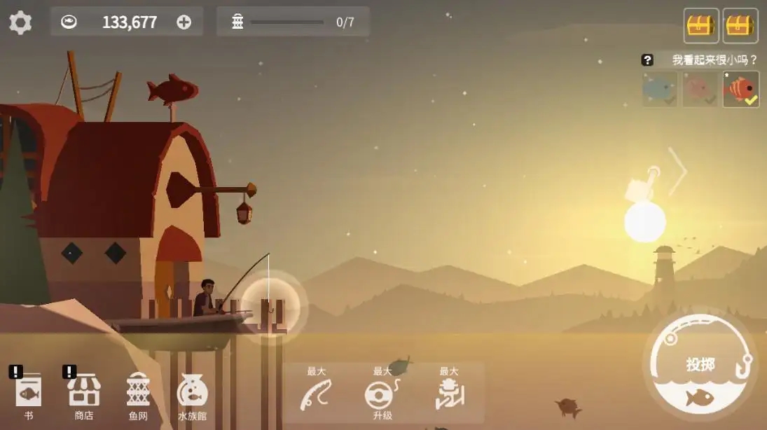上钩后再次点击即可完成垂钓,期间升级渔具可大幅度提示钓鱼的成功率。