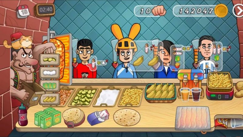 3、每道沙威玛都有自己的烹饪时间,玩家需要掌握烹饪节奏,确保食物新鲜出炉,避免顾客等待过久。