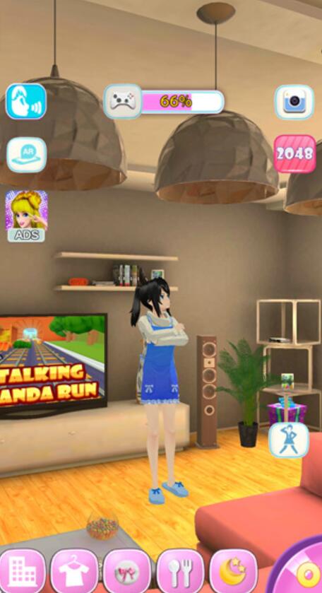 女朋友可以自由移动,玩家可以让她的女朋友用各种不同的风格探索房子的不同地方,让她成为你有意识的朋友,享受那个给你带来欢笑和快乐的女孩。在这里,你可以愉快地与女孩进行日常交流,你可以点击地板,让她在房间里自由移动,你也可以在厨房里做美味的事情来填补她的肚子,当然,你也可以和她聊天,度过轻松的时光。