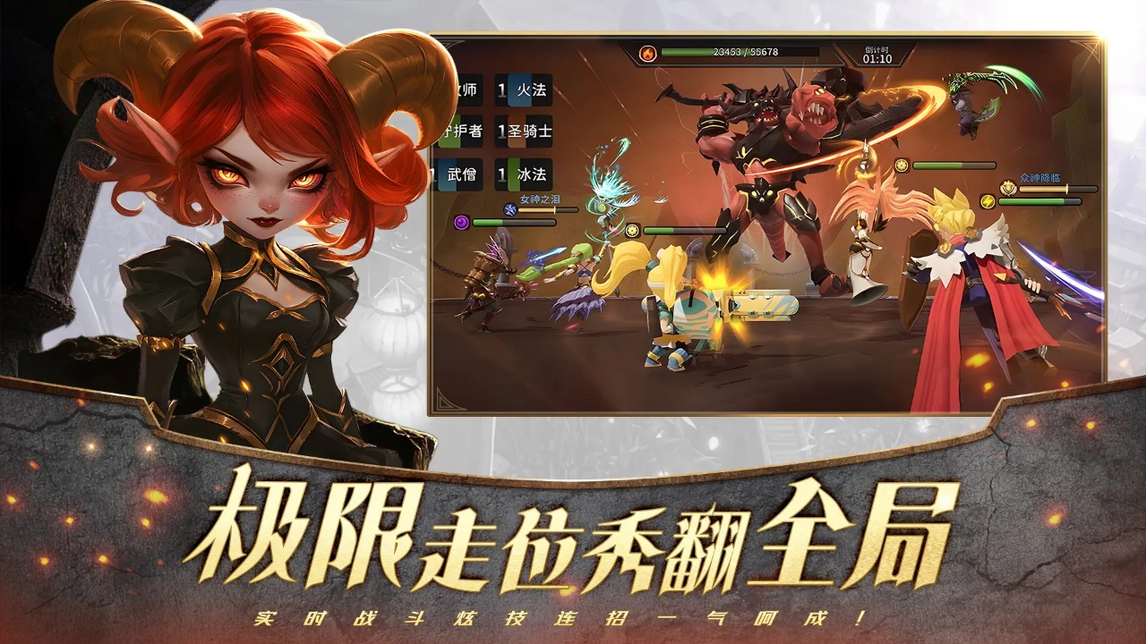 一个人终究是打不过一群人,游戏内有超过50位英雄等待加入你的队伍,设置有坦克、战士、弓兵等多种职业,重现经典“战法牧”等经典战术。自由组合不同技能的角色,打造专属于你的最强队伍,击败所有敌人!
