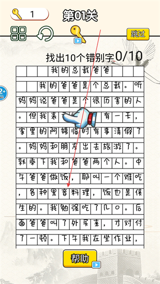 3、点击【帮助】可以获得提示,找剩余错别字。