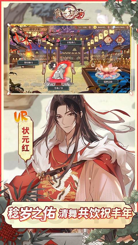 1、全新大型主题副本《稔岁之佑》-【全新】活动剧情,【全新UR】状元红,【全新SR】火山飘雪,【UR限定外观】状元红限定外观-霜野羽猎;