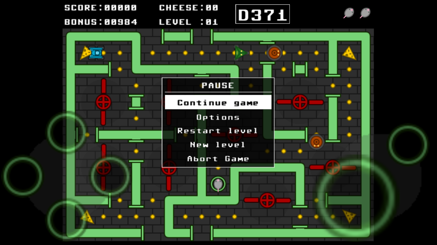 1、通过左下角方向键控制老鼠移动,灵活穿梭于迷宫各个角落。