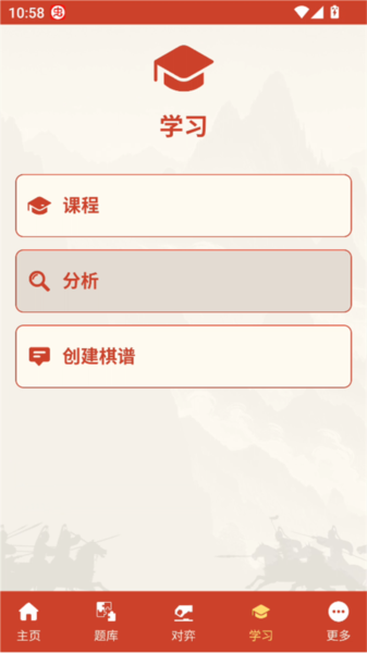 1.主界面集成在线对局、人机对战、题库挑战、视频课程与观战等全部功能。