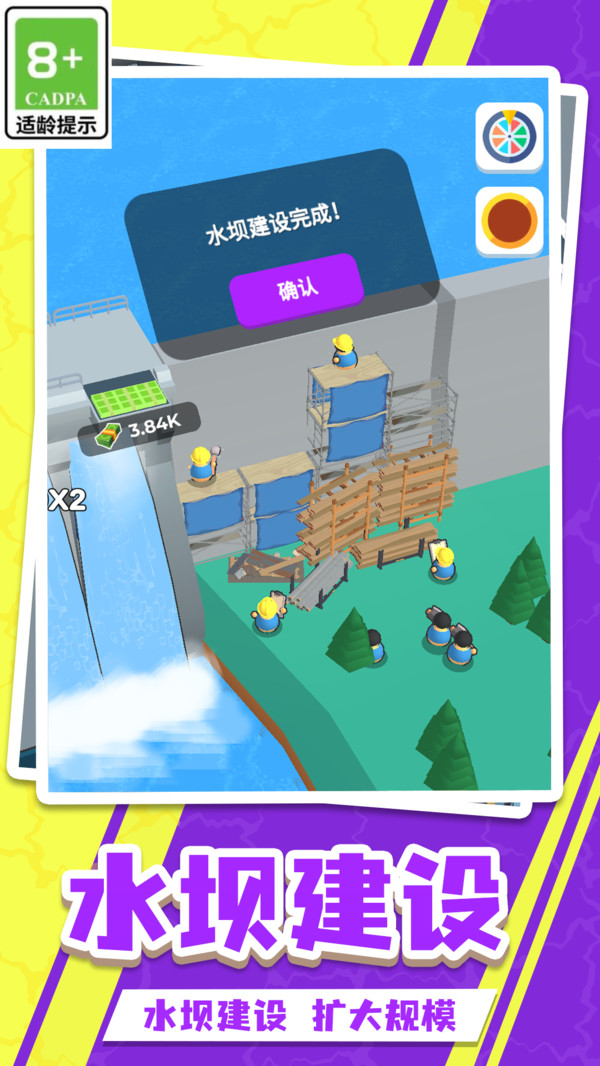 2、从一个小水坝逐步发展成大型建筑,每一个阶段都能让玩家感受到强烈的成就感。