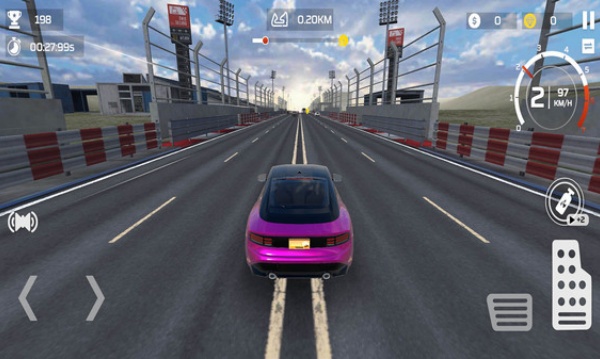 1. 玩家通过虚拟方向盘或重力感应来控制赛车的方向,并使用油门和刹车按钮来精准调节车速。