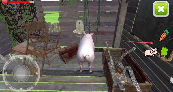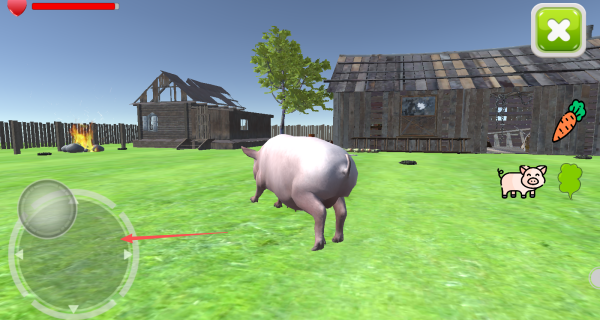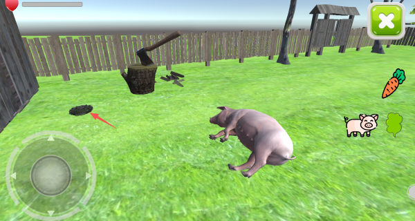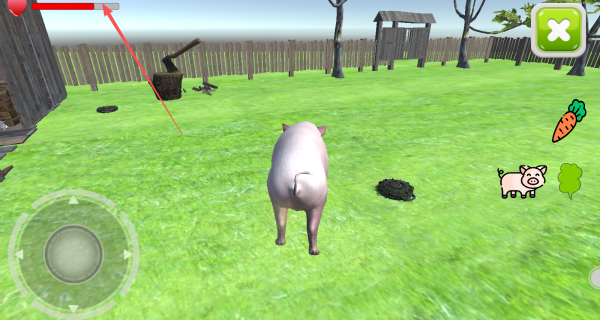 1、进入游戏后点击左侧按钮控制猪猪移动,在猪舍、户外等场景中开启专属冒险旅程。