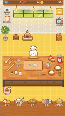 2.获得小麦粉后,点击厨房开始制作面包。每种面包都有专属食谱,需要凑齐对应材料才能制作。