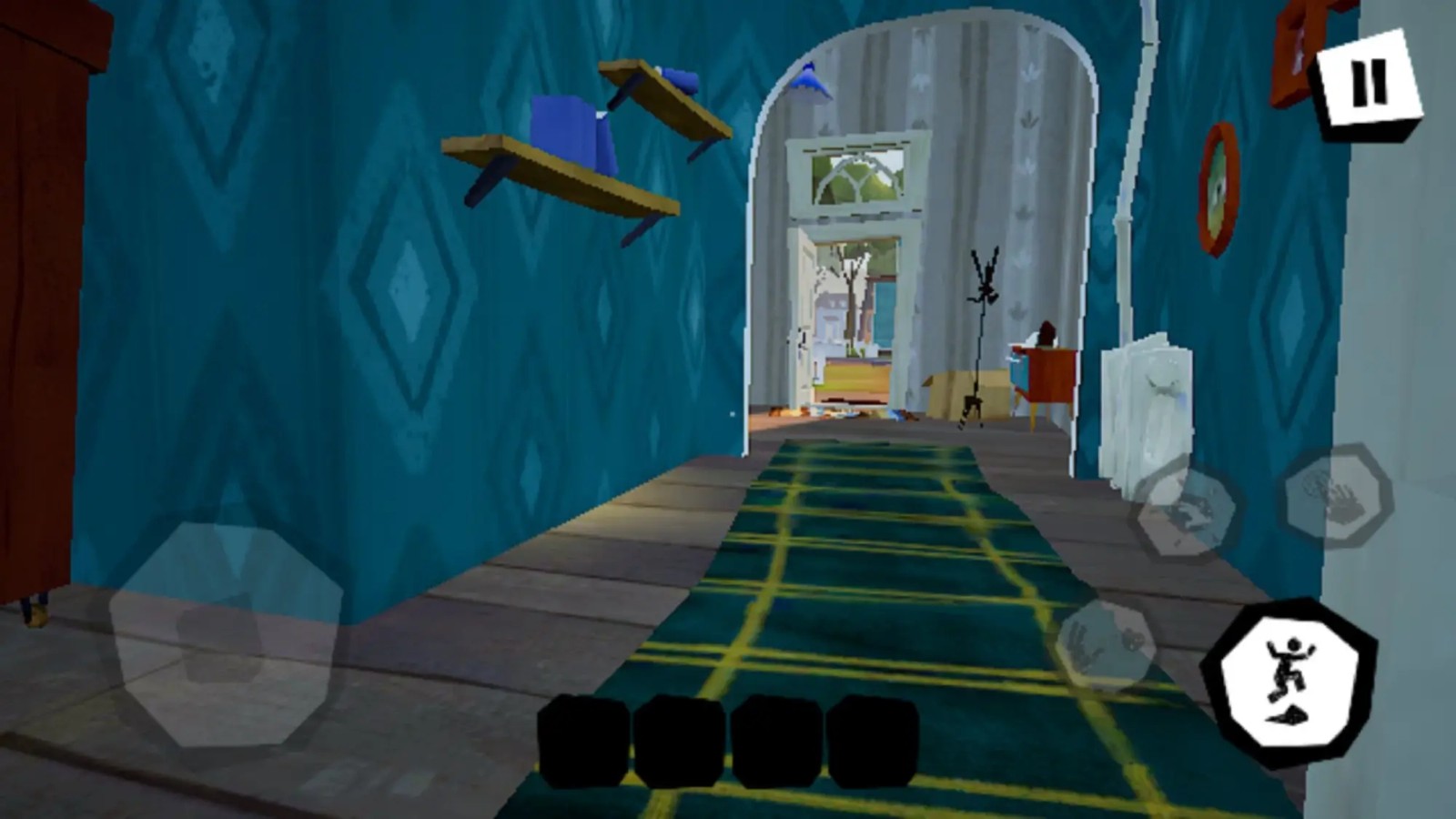 游戏操作简单,采用第一人称视角,和pc端的视感是一样的,游戏玩法和其标题一样,是以邻居家的房子为舞台的潜入动作游戏,玩家扮演的主角生活在平静的城郊居民区,怀疑邻居在地下室里藏了秘密,久久不能释怀的同时就想悄悄潜入隔壁邻居的家里,然而潜入并不是那么容易的,邻居也会同样应用智略作为敌人学习玩家的策略,对抗玩家的入侵。同时邻居还会猜测并预判你的行为,设下陷阱和障碍,尝试活捉你。为玩家打造了恐怖的氛围,不仅仅是画风惊悚,就连剧情故事都能让玩家感受到真实的吓人,有勇气挑战的玩家可以去游戏里寻找各种线索,最后成功逃脱。