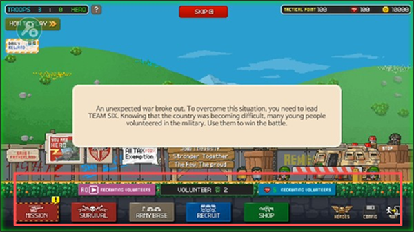1、游戏包含步枪手、火箭兵、狙击手等六大特色兵种,每个单位拥有3种专属技能,如狙击手的致命射击可无视护甲一击必杀。