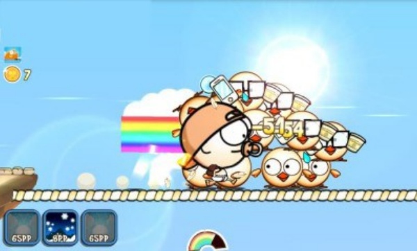 3.点击屏幕控制你的角色跳跃,双击可以二连跳,还要拾取沿途的金币和食物。