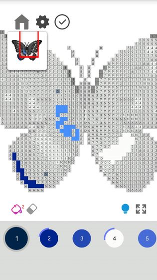5、点开蝴蝶模板,每个单元即是一个像素,可以图上各种各样的颜色。